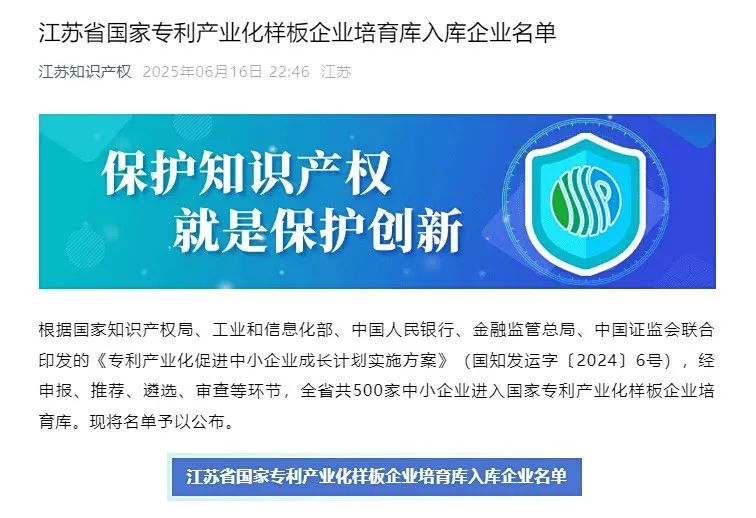 喜報!聯(lián)瑞新材入選首批國家專利產業(yè)化樣板企業(yè)培育庫